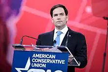 Marco Rubio, né le à Miami (Floride), est un homme politique américain, membre du Parti républicain. Président de la Chambre des représentants de la Floride entre 2006 et 2008, il est élu sénateur des États-Unis pour la Floride lors de l'élection de novembre 2010. En 2015, il annonce sa candidature aux primaires présidentielles républicaines, mais il échoue face à Donald Trump. Il décide dès lors d’être candidat à sa réélection au poste de sénateur de Floride. Il est réélu en 2016 et en 2022.