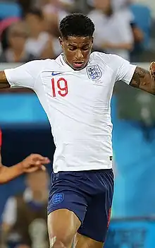 Marcus Rashford, né le à Wythenshawe en Angleterre, est un footballeur international anglais, qui joue au poste d'attaquant à Manchester United.