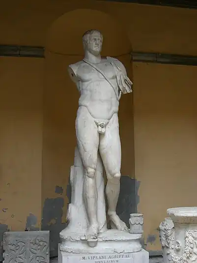 Marcus Vipsanius Agrippa (né vers - mort en mars de l'année ), anciennement francisé en Marc Agrippe[1], est un général et homme politique romain du Ier siècle av. J.-C. ; éduqué aux côtés du jeune Caius Octavius Thurinus, le futur empereur Auguste, son parcours personnel épouse dès 44 av. J.-C. celui du petit-neveu et désormais fils adoptif de Jules César : fidèle lieutenant, bâtisseur, homme de guerre, gendre, et héritier présomptif de l'Empire, Agrippa fut de tous les combats militaires et politiques de son plus proche ami.