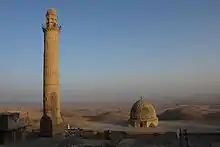 ![]() Le minaret de la grande mosquée de Mardin s'élève devant les plaines de Mésopotamie. |