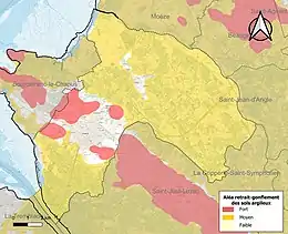 Le retrait-gonflement des sols argileux est susceptible d'engendrer des dommages importants aux bâtiments en cas d’alternance de périodes de sécheresse et de pluie. 86,3 % de la superficie communale est en aléa moyen ou fort (54,2 % au niveau départemental et 48,5 % au niveau national). Sur les 3 418 bâtiments dénombrés sur la commune en 2019, 943 sont en aléa moyen ou fort, soit 28 %, à comparer aux 57 % au niveau départemental et 54 % au niveau national. Une cartographie de l'exposition du territoire national au retrait gonflement des sols argileux est disponible sur le site du BRGM[20],[21].