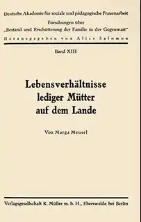 En 1933, Marga Meusel publie une enquête Lebensverhältnisse lediger Mütter auf dem Lande, sur les conditions de vie des mères célibataires à la campagne. En combinant sa vision chrétienne du monde avec des exigences socio-politiques modernes, elle développe des approches réalistes et concrètes[4].
