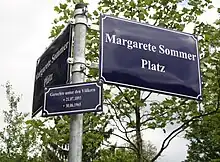 - En 1993, l'ancienne Werneuchener Straße dans le quartier berlinois de Prenzlauer Berg prend le nom de Margarete Sommer et le 8 mai 2014, ainsi qu'une place à Kleinmachnow, avec une stèle commémorative pour les survivants de la terreur nationale-socialiste et les « héros silencieux »[10].