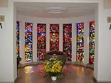 En 1963 et 1964, l'abbé Karl Braunstorfer la charge de concevoir 13 fenêtres pour la chapelle Bernardi de l'abbaye de Heiligenkreuz, consacrée vers 1290. À la suite de sa rencontre avec Braunstorfer — dont le processus de béatification s'est ouvert en 2008 — elle se convertit au catholicisme[3].