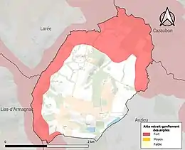 Le retrait-gonflement des sols argileux est susceptible d'engendrer des dommages importants aux bâtiments en cas d’alternance de périodes de sécheresse et de pluie. 40 % de la superficie communale est en aléa moyen ou fort (94,5 % au niveau départemental et 48,5 % au niveau national). Sur les 39 bâtiments dénombrés sur la commune en 2019, 2 sont en aléa moyen ou fort, soit 5 %, à comparer aux 93 % au niveau départemental et 54 % au niveau national. Une cartographie de l'exposition du territoire national au retrait gonflement des sols argileux est disponible sur le site du BRGM[24],[Carte 3].