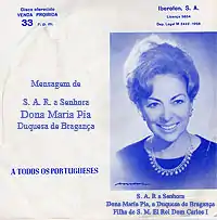 À cette époque, Maria Pia de Bragance revendique le titre de « duchesse de Bragance », soutenue par une petite minorité de monarchistes anti-salazariens alors que la majorité soutient Édouard Nuno de Bragance, aussi prétendant au titre de « duc de Bragance » et allié de Salazar dans l'espoir que celui-ci serait favorable à une restauration de la monarchie portugaise, tout comme Francisco Franco le fera en Espagne en 1975.