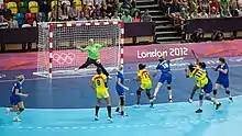 Maria Sidorova à la parade face à l'Angola aux Jeux olympiques de 2012.