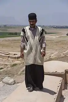 - Le pantalon dabit (persan : شلوار دَبیت), est un long pantalon noir, serré à la taille et dont les plis flottent librement jusqu'à terre. Ils sont généralement portés par-dessus un autre pantalon (zir-shalvāri) et accompagné d'une ceinture en cuir à grosse boucle.