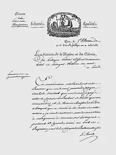 - A.N. Pierrefite-sur-Seine, AF/111/209. Arrêté de l'Agent particulier du Directoire en Guyane.