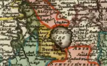 Detail d'une carte de 1742 situant l'Abbaye de Buchau