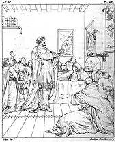 Mort de Jean de La Barrière, gravure de Pauline Landon d'après un vitrail du cloître parisien des Feuillants.
