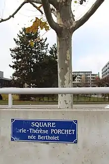 - « Une boutade qui se transforme en square : en 2002, la ville a décidé d'honorer sa plus fameuse ambassadrice, Marie-Thérèse Porchet. »