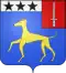 D'azur au lévrier passant d'or; au comble d'argent chargé de trois étoiles de sable ; au franc-quartier brochant des barons militaires.[6] |
