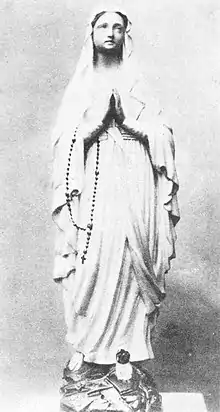 Après la confiscation de la statue de N-D. de Lourdes, Marie Mesmin la remplace par une autre : une Vierge-Enfant, réplique en plâtre vendue comme souvenir de « la Santissima Bambina» de Milan, statue horizontale représentant la Vierge-enfant au berceau et réputée miraculeuse[5].