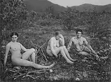 Marie Schnür (assise, à gauche) sur un tableau de Franz Marc, Zwei Frauen am Berg (1906)