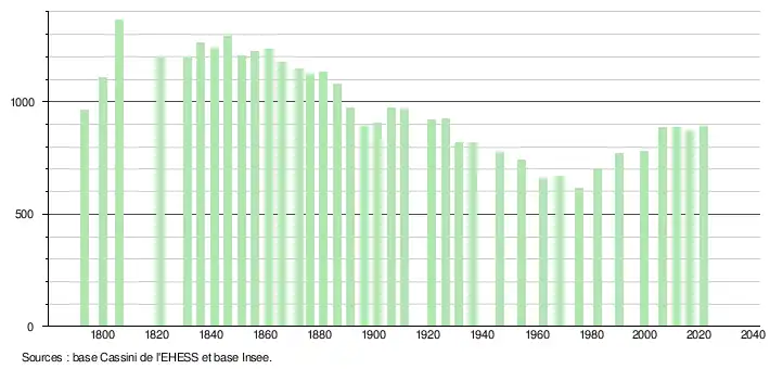 - Fiches Insee - Populations légales de la commune pour les années 2006, 2007, 2008, 2009, 2010, 2011, 2012, 2013, 2014, 2015, 2016, 2017, 2018, 2019, 2020 et 2021.