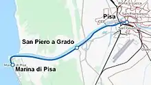 Précédemment, la ville avait aussi constitué le terminus d'un chemin de fer à vapeur construit en 1892 en reliant Pise à la Marina di Pisa et qui constituait le prolongement de la ligne Tranvia Pisa-Pontedera/Calci reliant Pise à Pontedera et Calci. Cette ligne partant de Pise traversait les fortifications du Bastion Stampace, le Canal médiéval des Navicelli, passait au-dessus de la ligne ferroviaire reliant les villes de Gênes et de Pise, puis suivait le cours de l'Arno en direction de Marina di Pisa. À la suite de l'inauguration du nouveau chemin de fer électrique, l'ancienne ligne Pise-Marina di Pisa cessa d'exister en 1932.