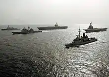 États-Unis (Carrier Strike Group basé autour de porte-avions de classe Nimitz, Landing Helicopter Dock, Landing Helicopter Assault, etc.) ;