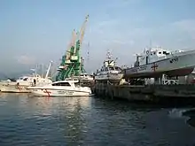 Les deux principaux bâtiments de combat, le Tbilissi (თბილისი), navire soviétique obtenu de l'Ukraine en 1999, et le Dioskuria (დიოსკურია), navire français du type La Combattante (1971), obtenu de la Grèce en 2004 (anciennement PG Ypoploiarchos Batsis, P17, armée 2 canons de 35 mm et 2 lance-torpilles de 533 mm, ainsi que quatre autres bateaux des garde-côtes abandonnés dans le port de Poti en car hors d'état de naviguer ont été sabordés par l'armée russe qui avait pris le contrôle de la ville sans combattre le soir du . Les autres bateaux ont été transférés dans le port de Batoumi avant l'arrivée des Russes.