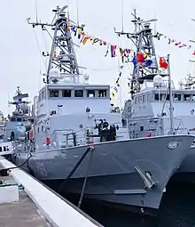 - quatre anciens patrouilleurs des gardes-côtes américains de classe Island[27] ; un autre transfert est prévu ;