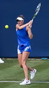 Elle retrouve le circuit en août, à l'occasion de l'Open de Canada, qu'elle dispute pour la première fois de sa carrière. Elle y obtient deux victoires contre l’Égyptienne Mayar Sherif (6-4, 6-2) et contre l'ancienne numéro une mondiale invitée au tournoi et sur le retour, Caroline Wozniacki (6-2, 7-5)[33]. Elle rencontre en huitièmes de finale l'Américaine Coco Gauff, titrée à Washington quelques jours avant. Elle encaisse une défaite nette (3-6, 0-6) contre la jeune septième mondiale. Elle joue le tournoi de Cincinnati quelques jours plus tard et y bat la spécialiste de double Kateřina Siniaková (7-5, 6-4), la Russe Anastasia Potapova (6-4, 6-2) ainsi que la locale Sloane Stephens (7-5, 6-3) pour jouer les quarts de finale. C'est la première fois depuis trois ans qu'elle parvient à ce stade en WTA 1000. Elle y rencontre la numéro une mondiale Iga Świątek contre qui elle perd le match (6-7, 1-6)[34].