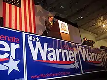 Le , Warner annonce son intention de se présenter pour le poste de sénateur de Virginie laissé vacant par l'octogénaire sénateur républicain John Warner[1]. Le , il remporte 65 % des voix contre 34 % à l'ancien gouverneur James S. Gilmore III et entre ainsi au Sénat des États-Unis.