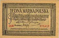Le mark polonais fut déclaré monnaie officielle de la Deuxième République de Pologne à partir du . En 1924, le złoty fut réintroduit pour lui succéder, s'échangeant alors au cours de 1 złoty = 1 800 000 marks polonais.
