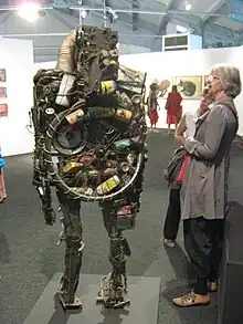 “Les sculptures de l’Allemand Markus Meurer, longtemps considéré comme un marginal, valent également le coup d’œil. Construits à partir de déchets – chaussures, boîtes de conserve, jouets cassés… –, ses fétiches brinquebalants se révèlent drôles et très attendrissants, un peu de réconfort dans ce monde de brut.”[7]