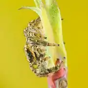 Cette araignée fréquente les arbres et s'abrite dans les anfractuosités des écorces.
