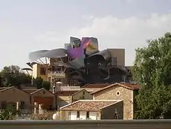 - (es) El Mundo «Gehry sobre el hotel Marqués de Riscal: 'He querido diseñar algo excitante porque el vino es placer'».