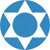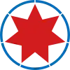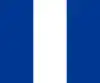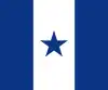 Cocarde en drapeau à trois bandes verticales: gauche et droite en bleu clair, centre en blanc avec une étoile bleu clair.