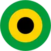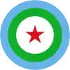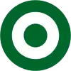 Cocarde en 3 cercles: centre rouge avec une étoile jaune, milieu en jaune, extérieur plus large en vert. |
