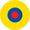 Cocarde triangulaire: 3 triangles pointes en bas, centre blanc, milieu noir et extérieur bleu. Sur et sous les ailes la pointe est vers l'arrière, sur les hélicoptères la pointe est vers le haut. | |