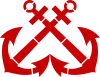 Cocarde: cercle en 2 parties: haut vert, bas bleu, du côté gauche centré 1/4 de cercle rouge avec une couronne de laurier jaune entourant une branche d'olivier de même. | |