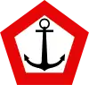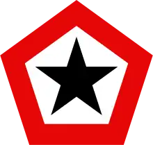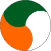 Cocarde triangulaire verte à bordure noire, au centre un huit en forme de losange, au centre du losange bas un losange blanc. | |