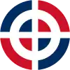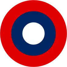Cocarde en 3 cercles : central et supérieur en blanc, milieu en bleu, depuis 1945.