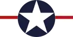 -A: cocarde en trois cercles: centre blanc, milieu bleu, extérieur rouge. Cocarde de la fin de la Première Guerre mondiale. -B: Cocarde: étoile blanche sur fond bleu avec un cercle rouge à son centre. Portée de 1917 à 1942. Dérive associée: Bande verticale bleue, sur sa droite alternance de 13 bandes horizontales rouge et blanche. -C: Idem B, le cercle rouge a été retiré pour éviter les confusions avec l'armée japonaise, émise peu après l'attaque de Pearl Harbor. -D: Idem C avec une bordure jaune. -E: Idem C avec pattes de chaque côté et bordure rouge. Émise mi-1943 pour une meilleure reconnaissance, sera rapidement retiré. -F: Idem E sauf que la bordure rouge sera remplacée par du bleu. Émis en 1943. |