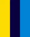 Cocarde : divisée en 4 parties horizontales: haut rouge, milieu supérieur bleu, milieu inférieur jaune et bas vert.