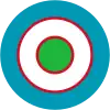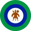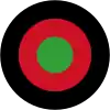 Cocarde en 3 cercles: extérieur noir, milieu rouge, centre vert avec un oiseau paradisier jaune.