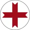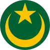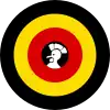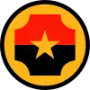 Cocarde jaune cerclé noir, Un rectangle divisé en 2 parties verticale et angles coupé en quart de cercle intérieur: haute noire, basse rouge, une étoile jaune au centre. | |