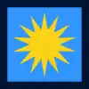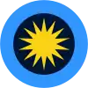Cocarde en 3 cercles: centre bleu avec un soleil jaune à 12 branches et un anneau bleu au central, milieu rouge (moins large), extérieur vert.