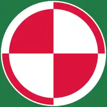 Ancienne cocarde: triangulaire, pointe vers le bas, orange bordé noir. Servait d'identifiant de neutralité au début de la Seconde Guerre mondiale. |