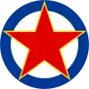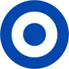 Image 1: Fuselage: Cercle blanc au contour bleu le tout surmonté d'une étoile rouge bordée jaune.