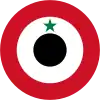 Cocarde en 3 cercles: centre noir, milieu blanc avec une étoile verte en haut, extérieur rouge.