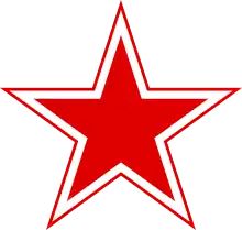 Cocarde en étoile: rouge bordurée blanc liserée rouge. Ancienne cocarde de l'U.R.S.S réutilisée depuis son éclatement en 1992 jusqu'en 2010 et depuis 2013.