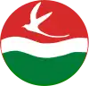 Cocarde en 3 parties verticales: haut rouge surmonté d'un colibri blanc, bas en vert, au centre une bande blanche ondulée. | |