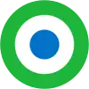 Cocarde en 3 cercles: centre bleu, milieu blanc, extérieur vert.