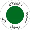 Cocarde en 2 cercles: centre vert, extérieur blanc avec inscriptions arabe.