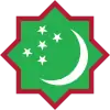Cocarde verte cerclée orange, un croissant de lune blanc avec 5 étoiles blanche entre les pointes. | |