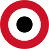 Cocarde en 5 cercles: du centre vers l'extérieur: rouge (petit), blanc, bleu (plus large), blanc, rouge. | |